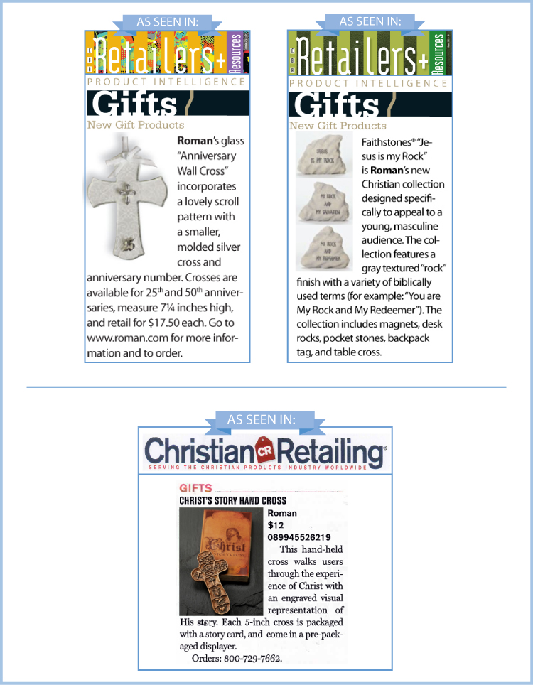 Roman regularly places advertising and articles in major trade publications and consumer magazines in order to inform retailers & consumers of upcoming trends and new products. Roman is also frequently featured throughout many industry editorial features. Please click on the images below to view Roman’s recent press appearances.